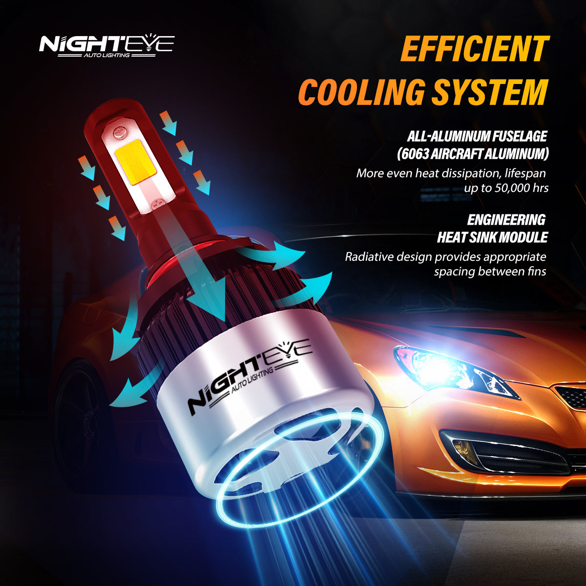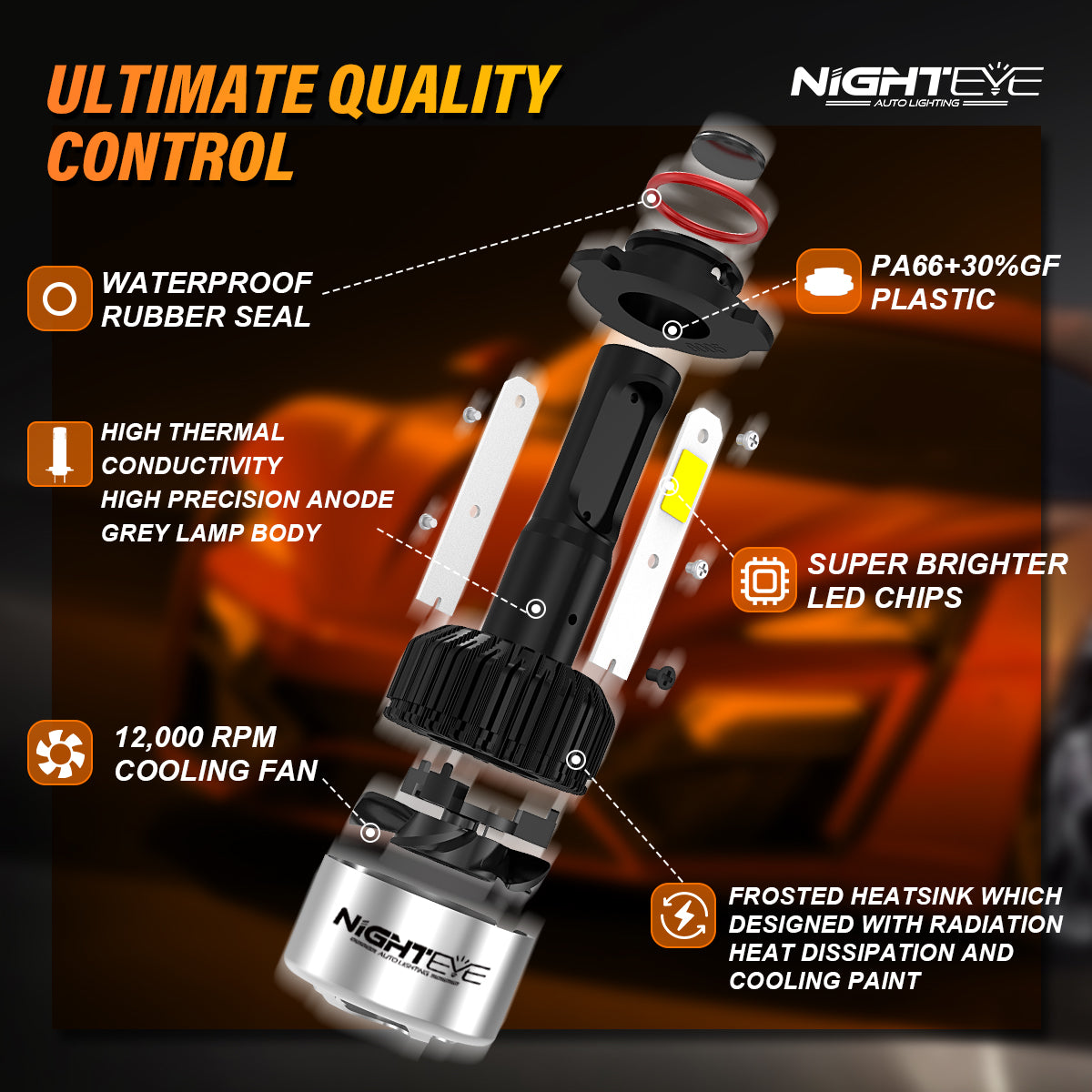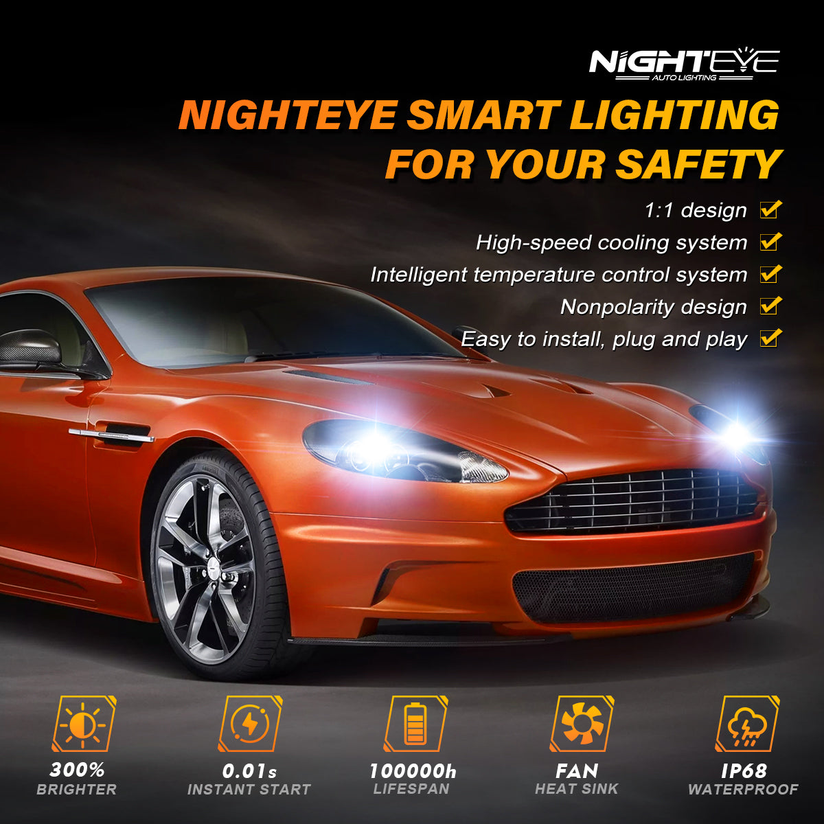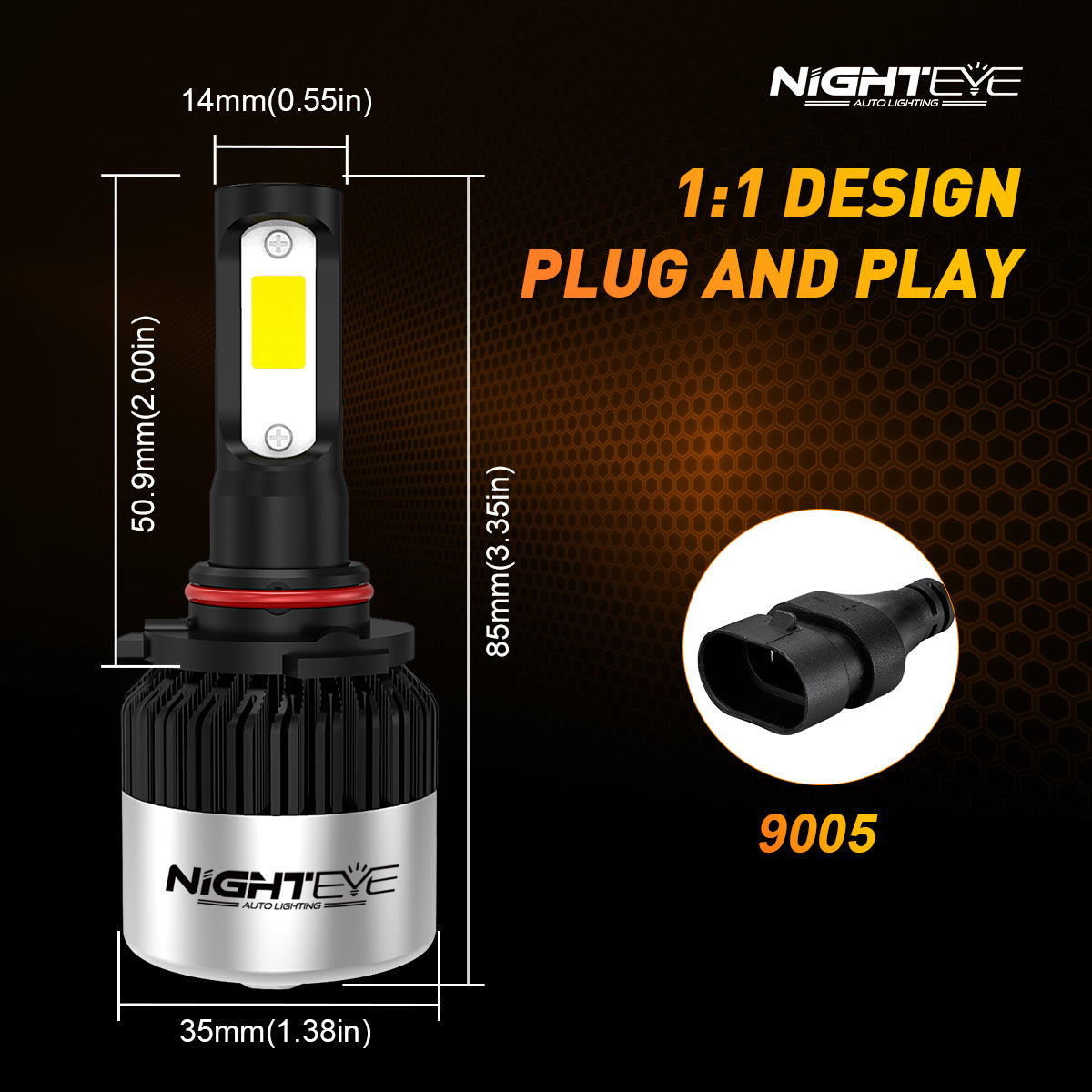 This Nighteye S2 headlight bulb, delivers a stunning 6500K cool white light at an impressive 9000 lumen per set. These bulbs are 60% brighter than traditional HID options, ensuring no dark spots and enhanced clarity. Designed with energy efficiency in mind, they consume only 72W per set, saving you 40% more energy compared to halogen and HID bulbs, all while providing a 360-degree viewing angle. The innovative aluminium alloy heat sink and built-in fan facilitate efficient heat dissipation, extending the lifespan to over 30,000 hours. With a straightforward plug-and-play installation that takes just 15 to 20 minutes, these bulbs fit most vehicles seamlessly. Upgrade your driving experience with the original NightEye product and illuminate your path like never before.